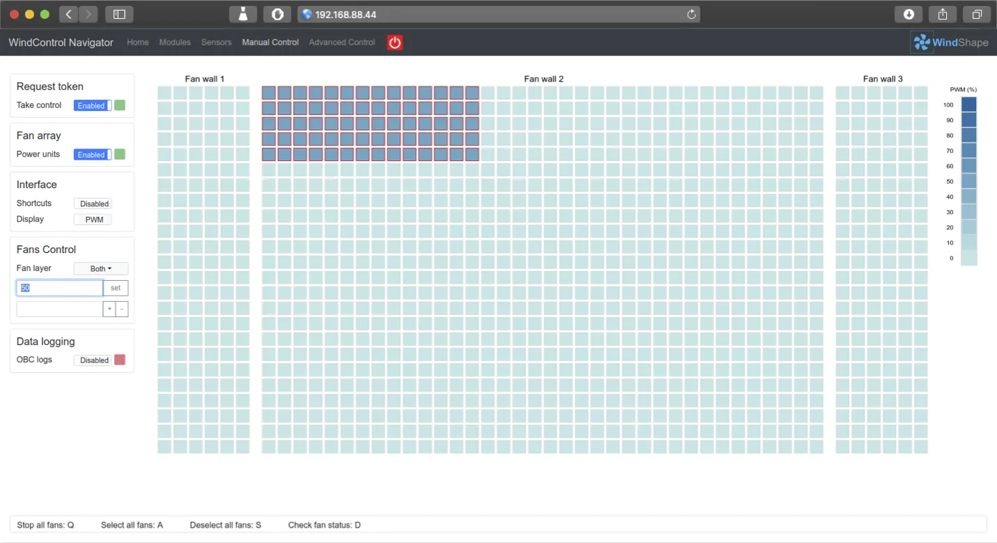 Take full control over the windshaper in just a few clicks with our web application. No software installation is needed – simply connect any computer (OS-independent) to the windshaper network, navigate with your favorite web browser to the windshaper address and you’re ready to work.